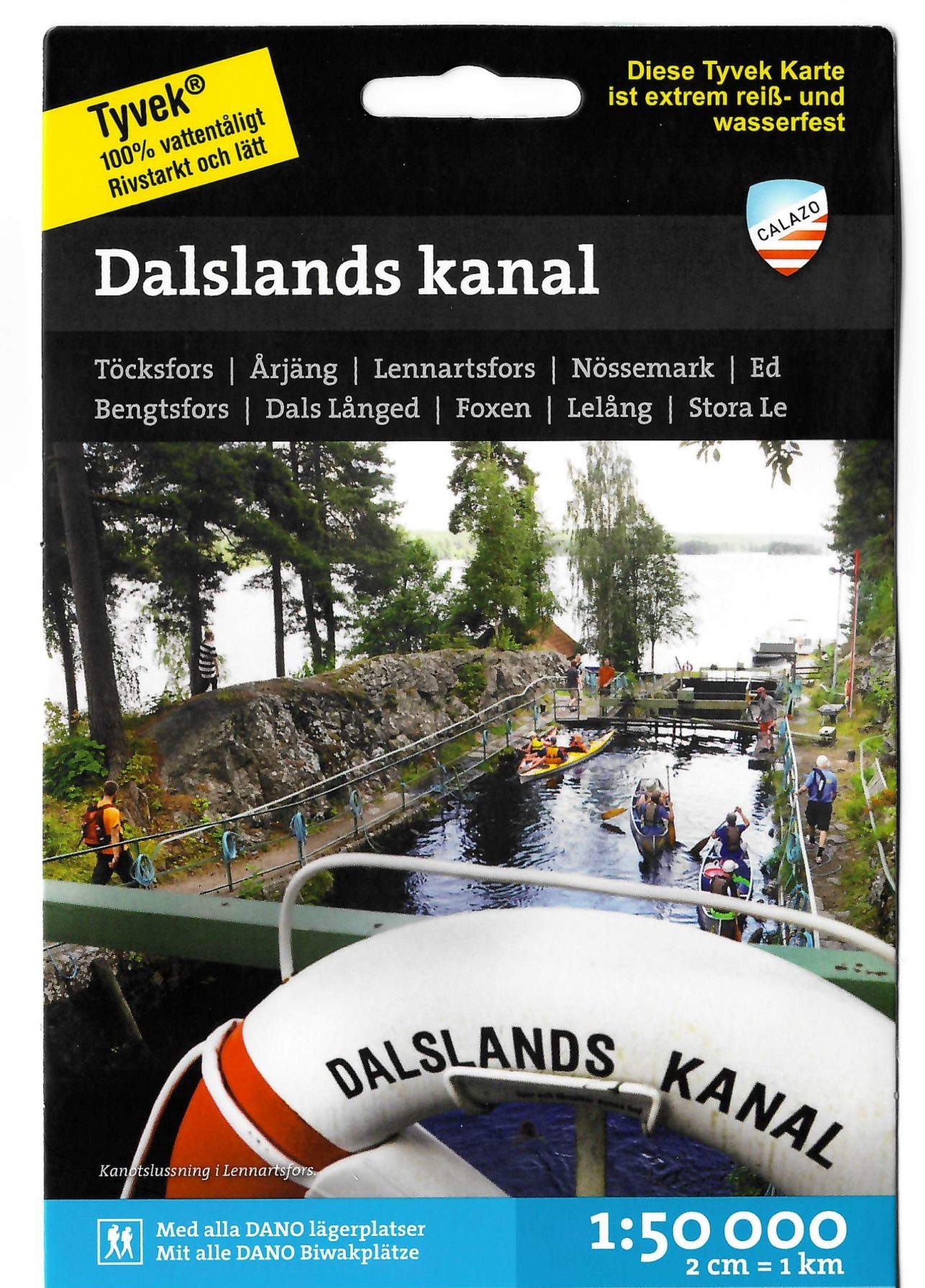 Karta i skala 1:50.000 på Tyvekmaterial som är 100% vattentåligt, rivstarkt och lätt. En detaljerad kartblad med utsatta symboler (lägerplatser/slussar mm) över sjösystemet Dalsland Nordmarken som även är lämplig för vandring.